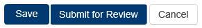 If you are a user without approval permissions and made changes to the order, click Submit for Review at the bottom of the page. A user with approval permissions must review/approve your order before it is submitted for processing. If you are not ready to submit the order for review, you can click Save and return to the order to submit at a later time.